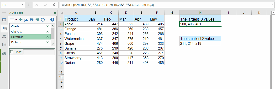 To find the lowest value in a range of cells, use the min function. If you use a k value of 1, the large function is exactly . For example, this formula will find the highest value in cells h2:h17. To find the lowest score use min instead of max in the formula. These functions take a range of values, then a k value.